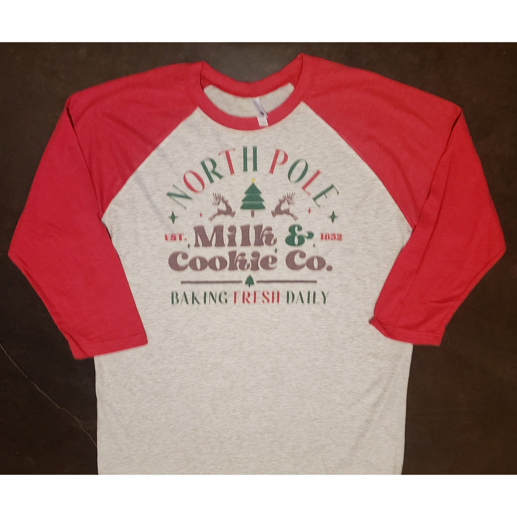 Christmas Milk and Cookie Crew on Red Raglan (Unisex Fit)